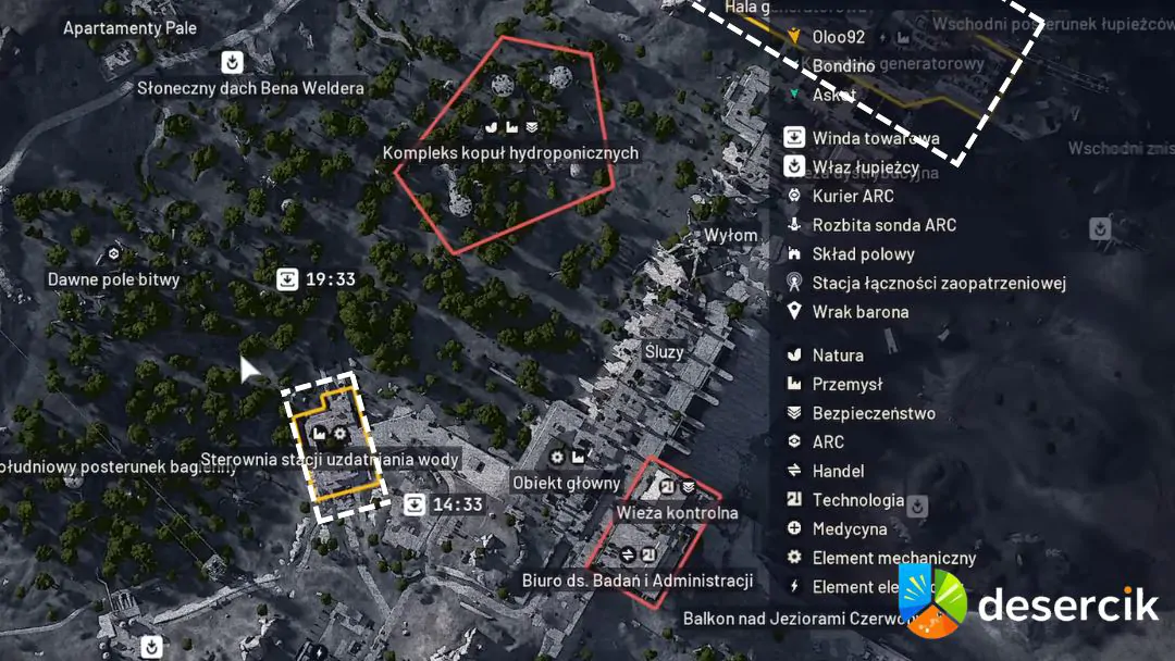 Po oczyszczeniu Oczyszczalni Wody nie warto od razu uciekać do windy. Dobrym ruchem jest sprawdzenie pobliskich lokacji, które naturalnie wpisują się w trasę farmienia. Kompleks kopuł Hydroponicznych to kolejne miejsce pełne technicznych skrzyń i zaplecza przemysłowego. Główny Obiekt oferuje więcej przestrzeni, ale za to większą liczbę pojemników do przeszukania. Złomowisko kusi chaosem i stertami metalu, w których często trafiają się cenne drobiazgi. Na końcu warto zajrzeć do Kompleks generatorowy, gdzie przemysłowy klimat sprzyja znajdowaniu mechanicznych części.