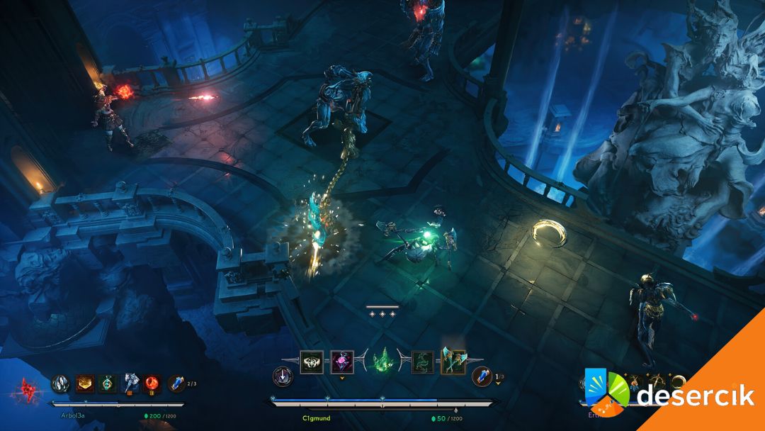 Choć widok jest izometryczny, kamera obraca się wokół Twojej postaci, co sprawia, że celowanie nie jest jak w Diablo, tylko bardziej przypomina trzecioosobową strzelankę. Twoje ataki idą dokładnie tam, gdzie ustawisz celownik, więc trzeba liczyć się z zasięgiem broni i zdolności. Uwielbiam ten system, bo nawet zwykła walka PvP wymaga przemyślenia każdego ruchu, a nie tylko wciskania przycisków.