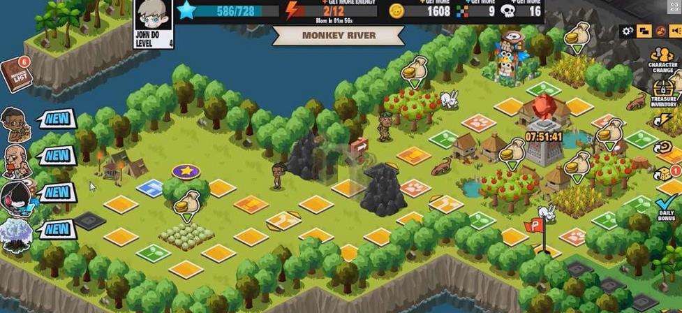 Jeśli graliście w New England albo Hunted Hollow to cały gameplay w Atlas Raider powinien być Wam znajomy. Nawet w Secret Relict mamy podobny system, gdzie wszystko opiera się na odkrywaniu kolejnych pól na planszy. Jednak nie mamy takiej wygody, aby przemieszczać się tutaj gdzie chcemy, najpierw należy rzucić kośćmi i wtedy to właśnie zady cuduje o tym, które pole zostanie odkryte. Wystarczy kliknąć w ikonkę kości na naszą głową i czekać aż zostanie wylosowana jakaś liczba. Oznacza ona maksymalną ilość kwadratów po których możemy się przemieścić. Na przykład jeśli wylosujecie 6 to możecie iść sześć pół do przodu, a jeśli któreś z pól na naszej drodze zostało już wcześniej odkryte to możemy zatrzymać się, gdzie nam się tylko podoba. Każdy krok w Atlas Raider wymaga punktu energii, ale w zamian dostajemy doświadczenie, złote monety i coś ze specjalnych przedmiotów. Kiedy zapełnimy nasz pasek doświadczenia przejdziemy na nowy poziom odblokowując tym samym nowe terytoria do zwiedzania, a także dostaniemy troszkę energii i kilka pixeli.