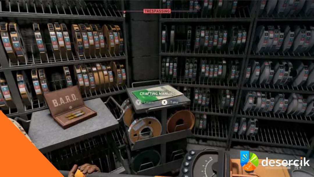 Alternatywnie, Crafting Manual znajdziesz też w Storage Room w Data Store Delta w Interchange. Trzeba wspiąć się na dane banki, zdobyć Storage Room Key, włożyć Atomic Battery, żeby zasilić obszar i w końcu podnieść podręcznik z metalowej tacy.