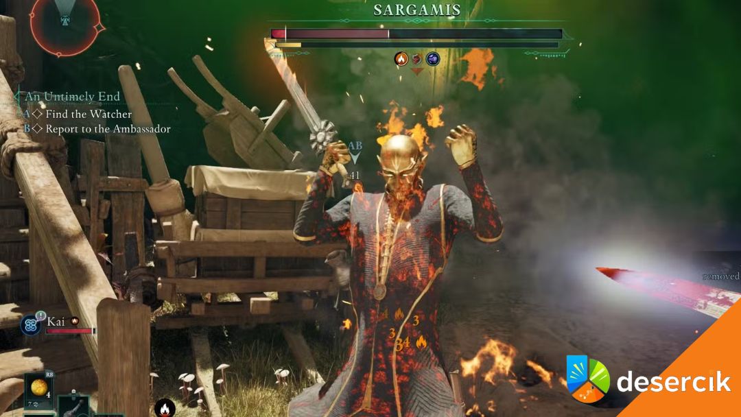 Aby zdobyć Ostatnie Światło Dnia, musisz skonfrontować się z Sargamisem i wybrać opcję ataku, co rozpocznie walkę z bossem. Po jego pokonaniu, możesz zdobyć unikalny miecz Ostatnie Światło Dnia z jego ciała.