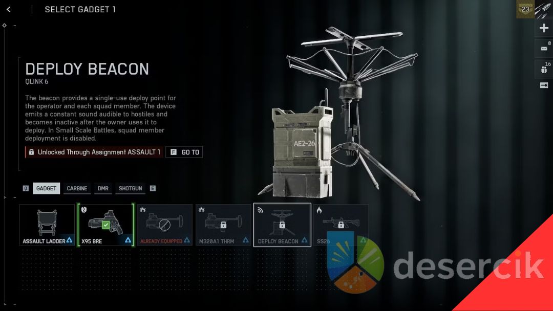 Aby odblokowa膰 ten gad偶et, musisz osi膮gn膮膰 23 poziom i uko艅czy膰 wyzwanie Assault 1. Warto si臋 jednak o to postara膰, bo dobrze ukryty beacon potrafi ca艂kowicie zmieni膰 losy bitwy – przeciwnik mo偶e nie zd膮偶y膰 nawet zorientowa膰 si臋, sk膮d ci膮gle pojawiaj膮 si臋 twoi ludzie.