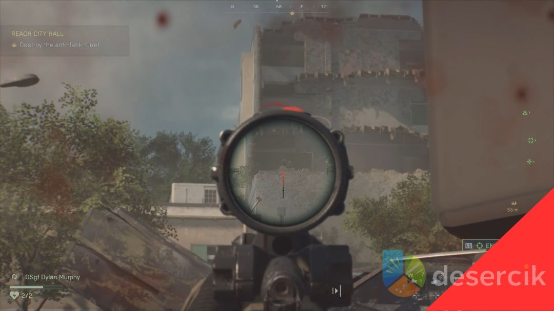 Trzymaj się blisko pojazdu, korzystaj z niego jako osłony i zasłaniaj się, gdy przeładowujesz. W jednej z alejek pojawi się czołg blokujący drogę – zniszcz go przy pomocy RPG-a, wyrzutni przeciwpancernej lub działka stacjonarnego.