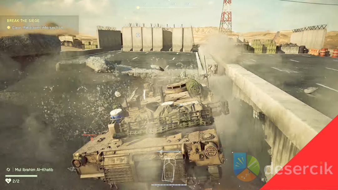 Przekraczając most, wrogowie zaczną ostrzeliwać Cię z wieżyczek przy drodze. Usuń najpierw wrogie rakiety, potem skup się na pojazdach po prawej stronie mostu. Jeśli czołg ucierpi, podjedź do Vehicle Supply Station na początku mostu, by uzupełnić amunicję i naprawić pancerz.