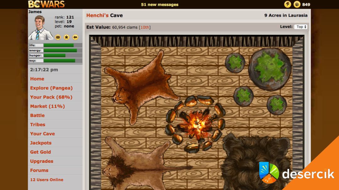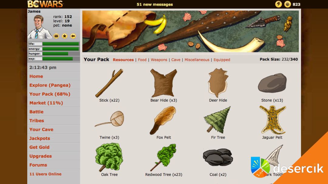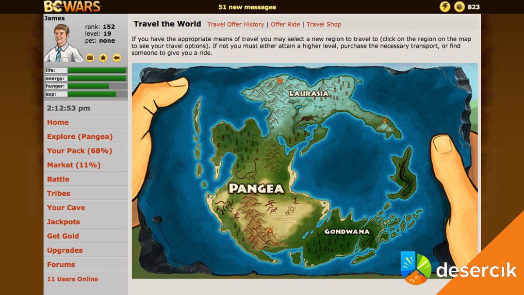 BC Wars to przeglądarkowa gra RPG z mocnymi naleciałościami MMO, która od razu wyróżnia się klimatem. Zamiast klasycznego fantasy dostajemy prehistoryczny świat Pangei, gdzie ludzie żyją obok dinozaurów i dziwnych stworzeń. Brzmi nietypowo i dokładnie taka jest ta gra. Od pierwszych minut widać, że nie chodzi tu tylko o expienie postaci, ale o długofalowe budowanie pozycji i gromadzenie waluty, czyli… małży.