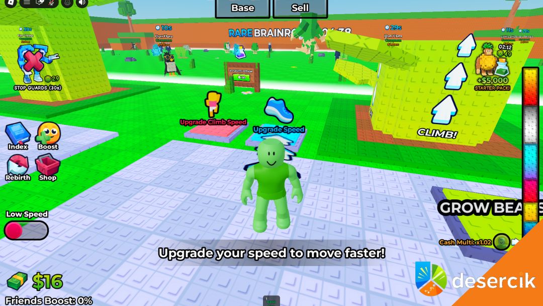 • Skup się na rzadkich Brainrotach – generują więcej Cash na sekundę i przyspieszają rozwój.