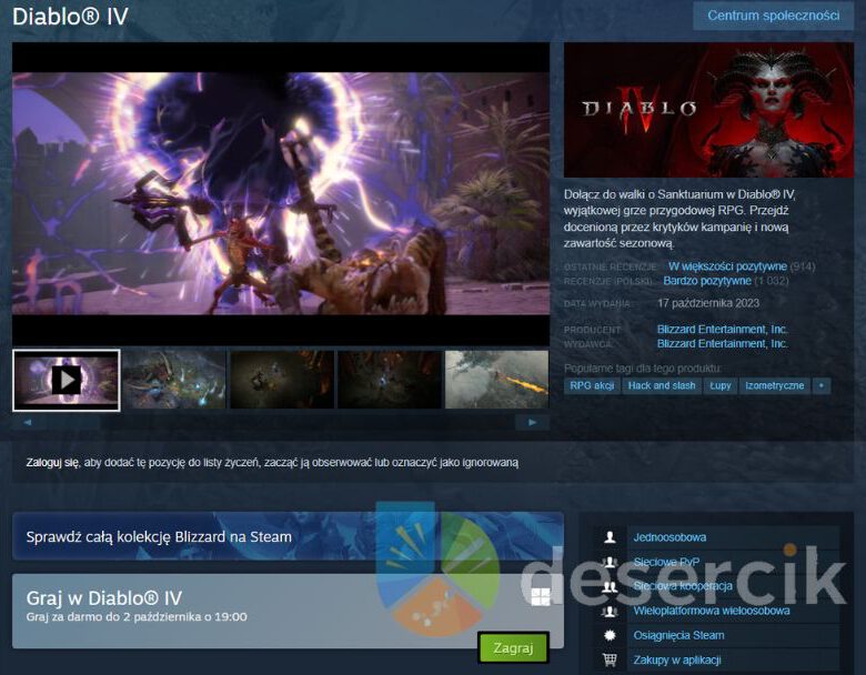 Do 2 października każdy może pobrać podstawową wersję Diablo 4 z poziomu Steama i grać bez żadnych opłat. Oczywiście dodatek Vessel of Hatred nie jest w tym pakiecie, ale sama baza ma tyle zawartości, że spokojnie wystarczy na wiele godzin zabawy. Warto jednak się pośpieszyć, bo czasu nie ma dużo.