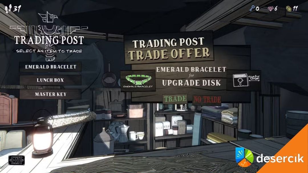 Jeśli 15 ci nie wystarcza, możesz zdobyć dodatkowy dysk w Trading Post, ale musisz coś za niego oddać. Musisz najpierw zbudować Trading Post na zewnątrz w ogrodzie, a potem zaoferować wartościowe przedmioty, np. Ornate Compass, Emerald Bracelet albo Master Key. Wydaje się, że można zdobyć tylko jeden dodatkowy dysk dziennie.