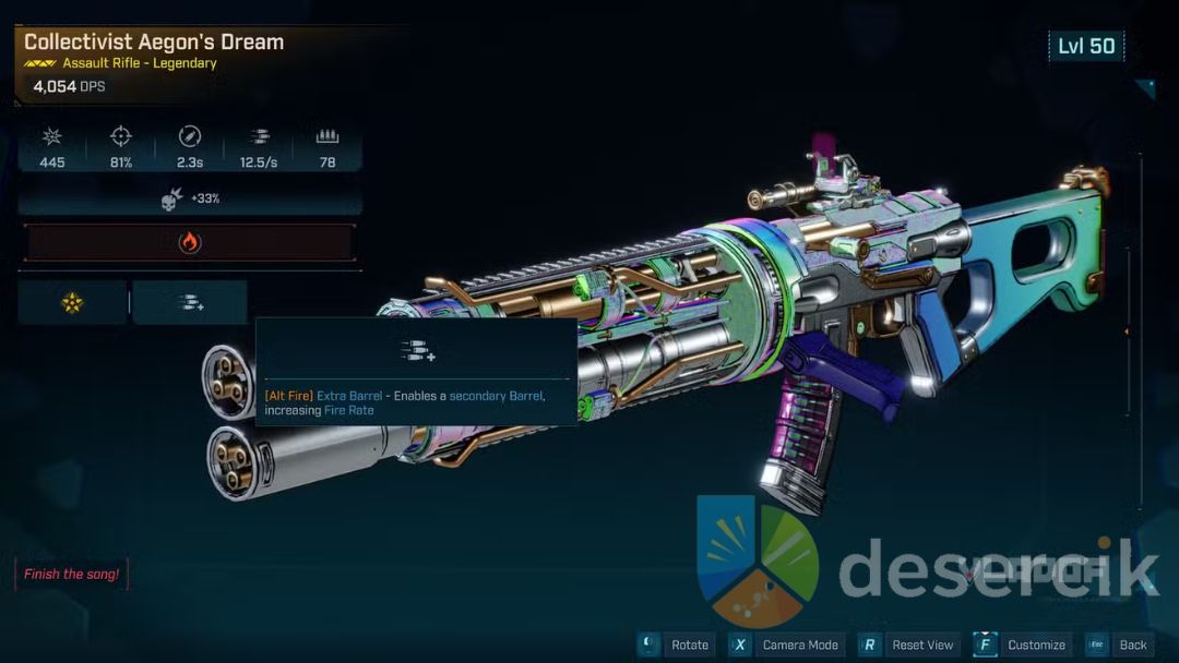 Aegon’s Dream (karabin szturmowy) – jedna z ciekawszych broni, która strzela amunicją ognistą i lodową jednocześnie. To jawne nawiązanie do sagi „Gra o Tron”, gdzie ogień i lód są motywami przewodnimi. Broń została wyprodukowana przez Vladof i może posiadać różne dodatkowe modyfikatory, co sprawia, że trafienie na „idealny roll” może zająć naprawdę dużo czasu.