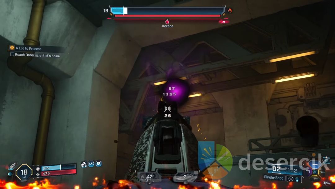 Tarcza Horace’a jest wyjątkowo podatna na obrażenia od broni elektrycznych, dlatego absolutnym obowiązkiem jest zabranie ze sobą czegoś z żywiołem Shock. Dzięki temu dużo szybciej zbijesz jego osłonę.