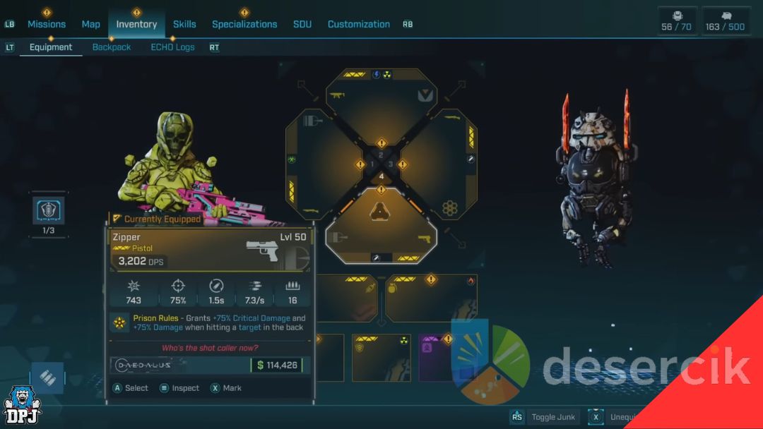 | Faulty Detonator Grenade | Eksperymentalny granat z funkcją Sticky Trigger, który po eksplozji tworzy kule ładunkowe powodujące kolejne detonacje. Idealny dla graczy preferujących widowiskowe i łańcuchowe eksplozje. |