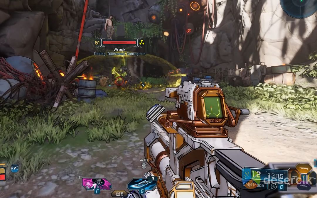 Wreck jest uzbrojony w broń powodującą obrażenia korozyjne i posiada atak hakiem, którym może przyciągnąć gracza do siebie. Dlatego podczas walki warto utrzymywać dystans, używać przeszkód terenowych i celować w jego słabe punkty. Walka nie jest przesadnie trudna, ale wymaga uwagi i odpowiedniego wykorzystania otoczenia.