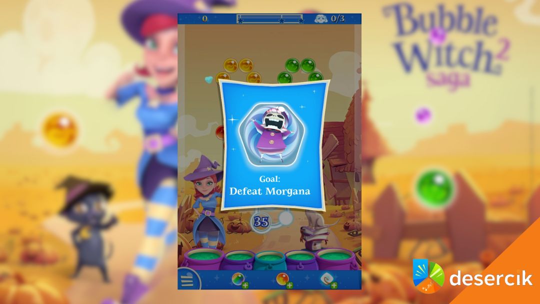 W Bubble Witch 2 Saga pojawia się moment, którego fani poprzedniej części na pewno nie przegapią – starcia z czarownicą Morganą. Te poziomy wyróżniają się tym, że w zadaniu pojawia się komunikat „Defeat the Morgana”, czyli naszym celem jest pokonanie tej dobrze znanej wiedźmy.
