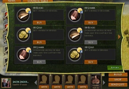 Rozgrywka składa się z budowaniu naszego królestwa i ciągłej walki. Na etapie budowy, gracze używają energie, złoto i zasoby na zakup gospodarstw, kopalń i tartaków, które skutecznie pozwalają graczowi na zbiory dodatkowych zasobów. Budynki te mogą być ulepszane, zwiększając tym samym ich wydajność, a gracze mogą przypisać pracowników do slotu w kopalni w celu zwiększenia jej produkcji jeszcze bardziej.