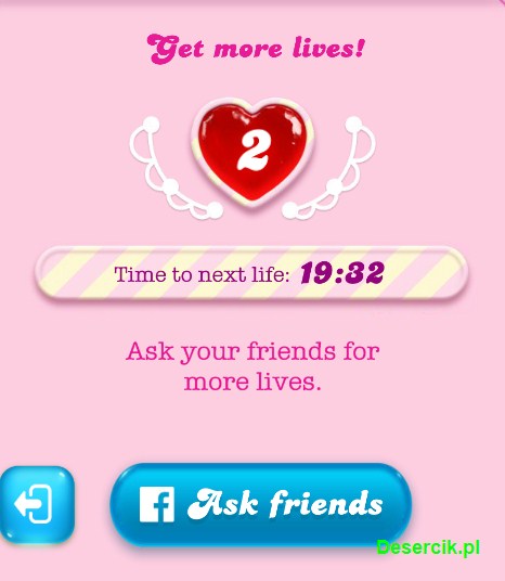 Jeśli jednak nie lubicie czekać to możemy uzupełnić życia natychmiast za Złote Sztabki (Gold Bars), albo można poprosić znajomych aby wysłali nam w prezencie jedno, dodatkowe życie. Pamiętajcie jednak, że jeśli macie maksymalną ilość żyć i dostaniecie jedno od znajomego to nie pojawi się ono na koncie.