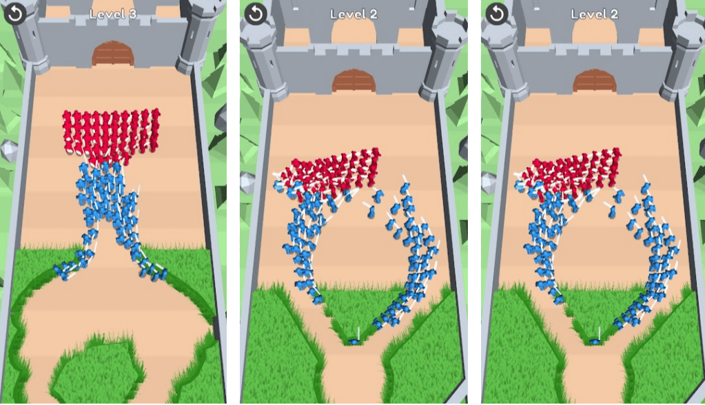 Kiedy podchodzisz do bramy zamku, zwykle czeka na ciebie spora liczba wrogów. Zamiast robić małą polanę, przez którą może przejść twoja armia, spróbuj przesunąć w taki sposób, aby jednocześnie pozbyć się całej trawy. Im więcej żołnierzy zdołasz przedostać za jednym zamachem, tym lepiej sprawią się w starciu, w kupie siła.