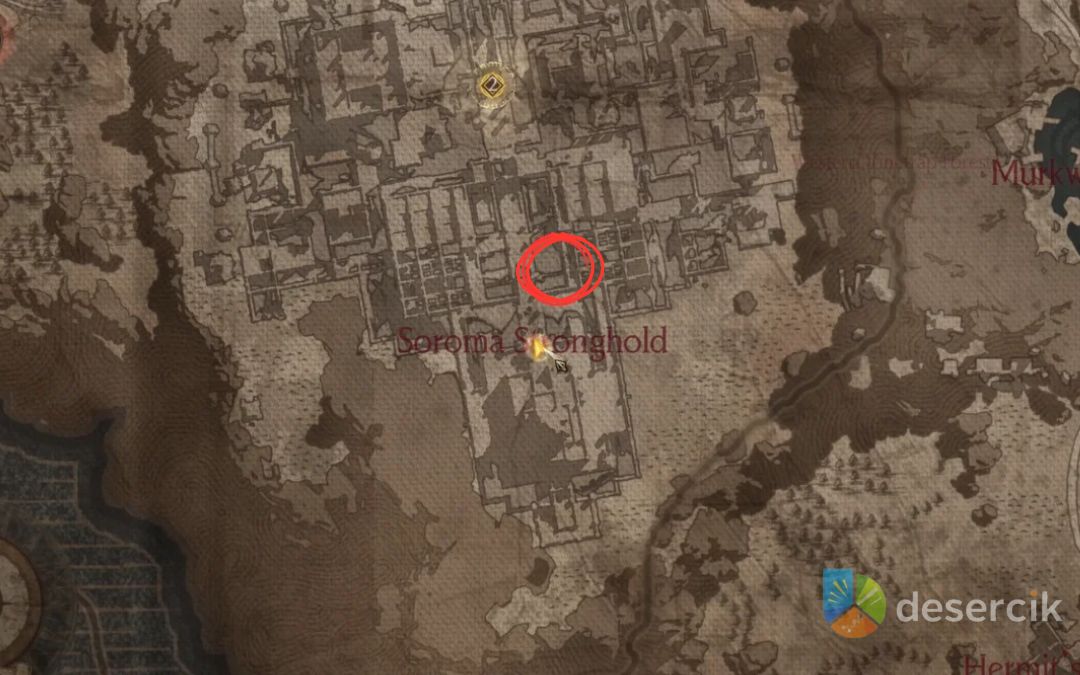 Ta lokalizacja jest nieco bardziej skomplikowana, ale zdecydowanie warto ją odwiedzić. Po wejściu do Seroma Stronghold, idź cały czas na południe, aż dotrzesz do wyjścia z twierdzy. Ale tutaj niespodzianka – nie wychodź! Zamiast tego odwróć się na północ, zejdź po schodach, a następnie skręć w prawo (na wschód).