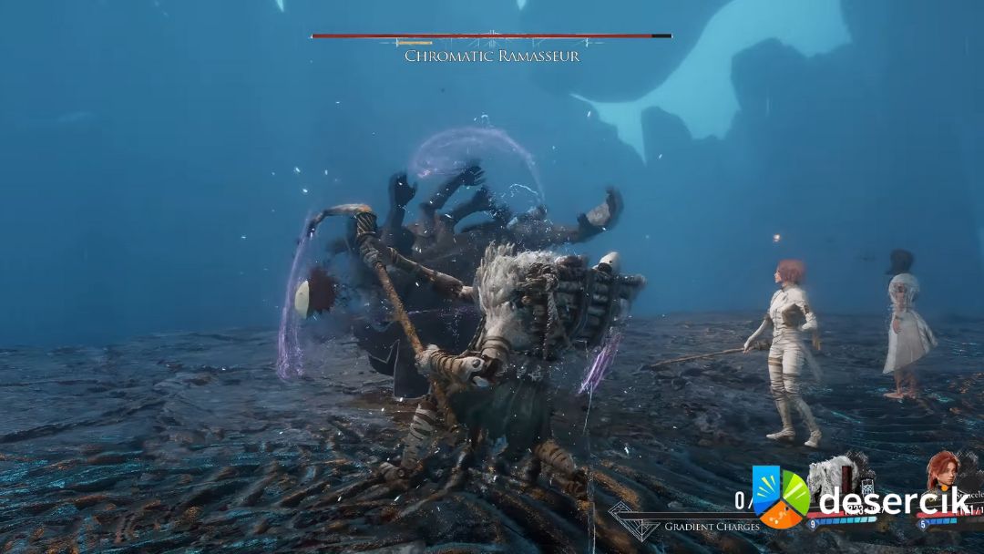 To nie jest typowy przeciwnik. Chromatyczny Ramasseur nie tylko stanowi wyzwanie mechaniczne, ale jest też artystycznie spójnym elementem świata gry. Każdy jego ruch wydaje się być częścią choreografii bólu, a starcie z nim przypomina bardziej próbę cierpliwości i precyzji niż klasyczną wymianę ciosów. Co ważne – nie możecie zadawać mu obrażeń w tradycyjny sposób. Cała walka opiera się na parowaniu, kontraatakach i wyczuciu rytmu.