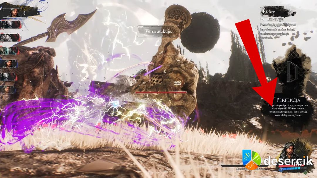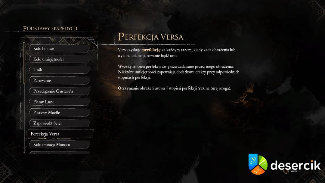 Jeśli Verso otrzyma obrażenia, traci 1 punkt Perfekcji, ale tylko raz na turę przeciwnika. Oznacza to, że gracz musi nie tylko atakować, ale również umiejętnie zarządzać defensywą – każde trafienie może zredukować potencjał ofensywny Verso.