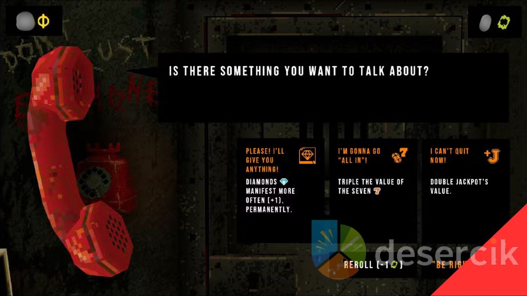 Jedną z najważniejszych zasad w CloverPit jest rerollowanie telefonów i charmsów. Na początku runu możesz mieć ofertę ulepszeń, która wydaje się słaba lub kompletnie nieprzydatna – w takim przypadku nie bój się powtarzać losowania, nawet kilkakrotnie. Wczesne rerolle są tanie, a każde powtórzenie daje szansę na zdobycie mocniejszego zestawu narzędzi, który pozwoli ci opanować rundę i zgromadzić więcej monet.