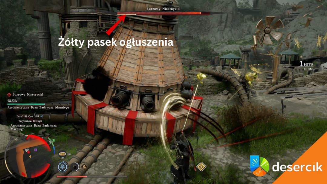 Możesz przyczaić się w jednym z żurawi stojących na arenie i po prostu poczekać. Burzowy Niszczyciel zadaje sobie obrażenia sam, a ty obserwujesz walkę z bezpiecznej perspektywy. Minie trochę czasu, może nawet 40 minut, ale ostatecznie mech padnie własną siłą. To jest idealne rozwiązanie, jeśli wolisz uniknąć ryzyka, ale pamiętaj, że kolejne bossy w Crimson Desert nie dadzą Ci tyle komfortu – tam nie będzie miejsca na ukrywanie się.