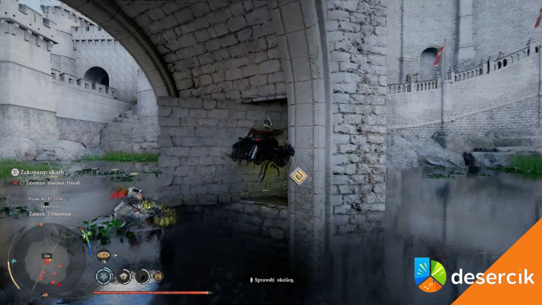 Całość zaczyna się w Demeniss, w części miasta zalanej wodą. To właśnie tam znajduje się sekretne miejsce Ursuli, do którego nie da się wejść w oczywisty sposób. Gdy dotrzesz w odpowiedni rejon, musisz zejść pod most. Właśnie tam znajdziesz ścianę, która na pierwszy rzut oka wygląda zupełnie normalnie, ale coś w niej nie pasuje.