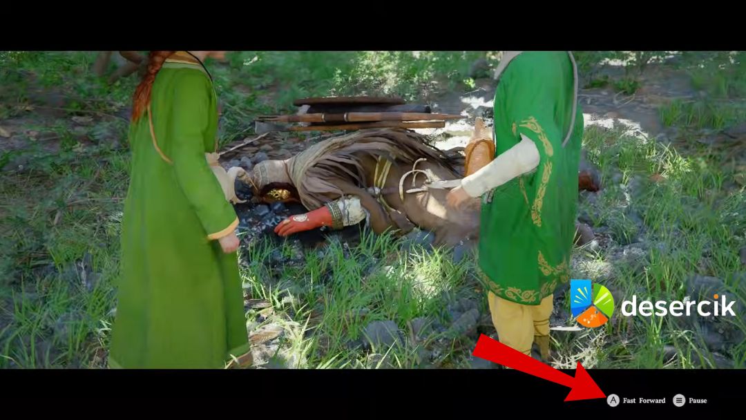 Zamiast klasycznego „Skip”, twórcy dodali funkcję Przewiń do przodu, czyli przyspieszone odtwarzanie sceny. Podczas cutscenki w prawym dolnym rogu ekranu pojawia się podpowiedź z odpowiednim przyciskiem lub klawiszem.