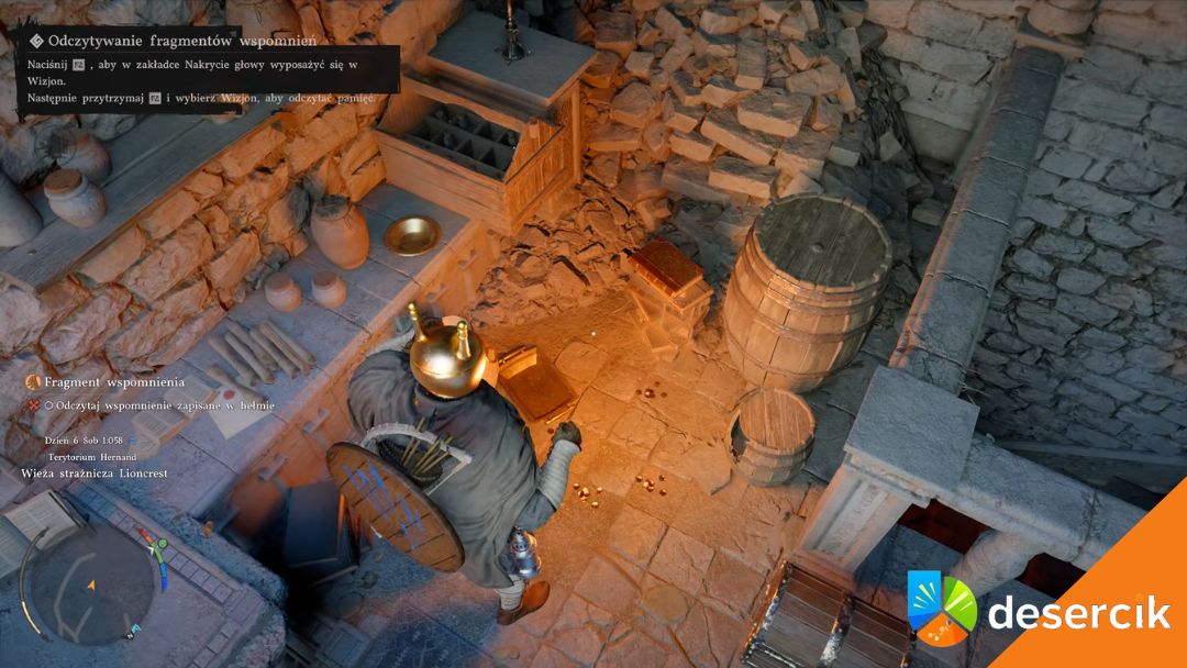 Na najwyższym poziomie znajdziesz kluczowy przedmiot – Wizjon Hełm (Visione Helmet). Podniesienie go natychmiast uruchamia kolejną misję fabularną „Fragmenty wspomnień”, więc upewnij się, że jesteś gotowy na dalszą część historii.