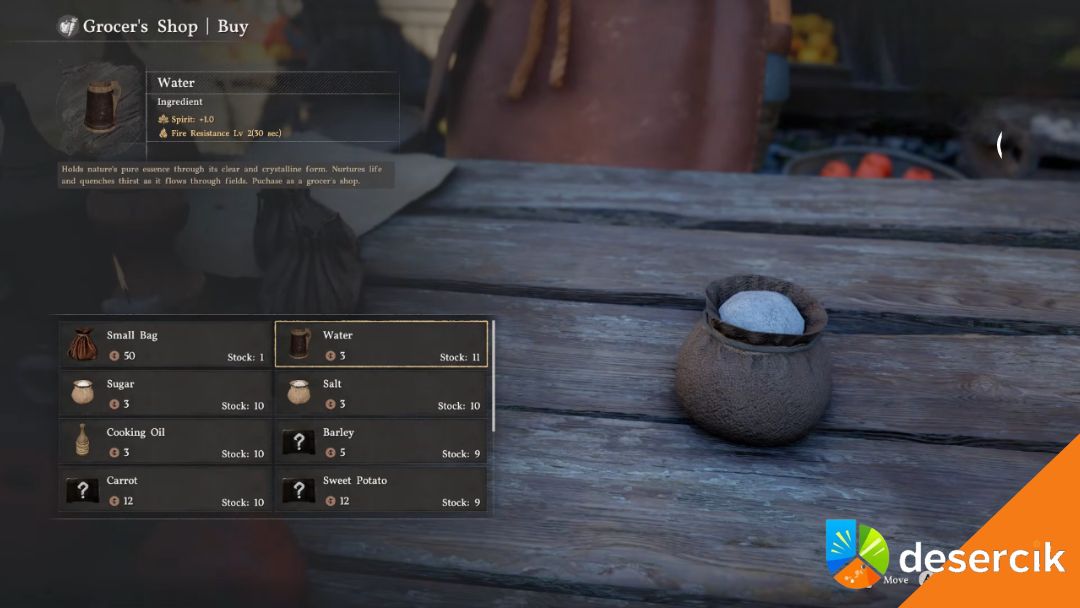 Gotowanie to też pole do eksperymentów – możesz swobodnie łączyć składniki i sprawdzać, jakie efekty przynoszą. Często właśnie w takich improwizacjach powstają najbardziej efektywne posiłki, które dają nie tylko Health i Spirit, ale też tymczasową ochronę przed ekstremalnymi warunkami pogodowymi. Produkty zdobywasz podczas eksploracji lub kupując je u handlarzy, a w zakładce „Wiedza” możesz sprawdzić, gdzie rosną konkretne owoce i warzywa.