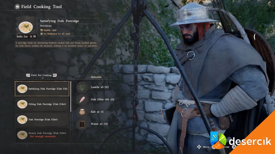 Właśnie tutaj wkracza gotowanie. Dobrze przygotowane posiłki pozwalają nie tylko przywrócić Health i Spirit, ale też zwiększają odporność na mróz lub upał. Na przykład „Owsianka rybna” przywraca sporo punktów zdrowia i zapewnia odporność na mróz na kilka minut – co może okazać się kluczowe podczas nocnych wypraw w górzystych regionach Pywel.