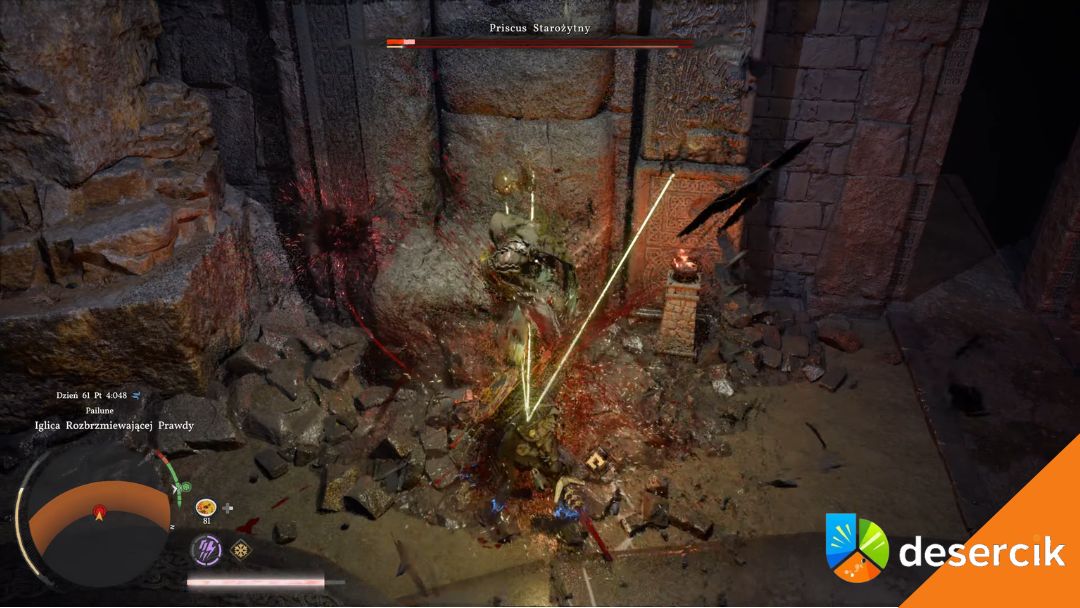 Cała walka sprowadza się więc do powtarzania jednego rytmu – kontrolujesz tempo, blokujesz ataki i odpowiadasz w odpowiednim momencie. Gdy złapiesz ten schemat, Priscus przestaje być problemem i walka kończy się szybciej, niż się wydawało na początku.