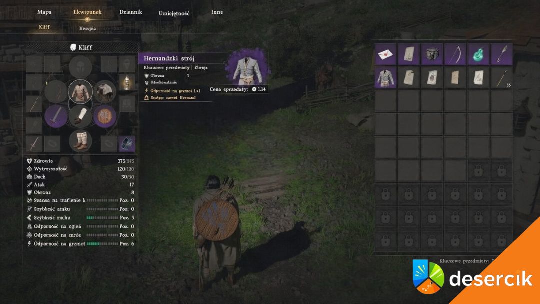 Jeżeli przypadkowo sprzedałeś lub zgubiłeś Strój Hernanda, najpewniejszym sposobem będzie zakup hernandzkiego stróju u krawca w centrum miasta, obok kowala. Choć cena może wydawać się wysoka, w miarę postępów w grze będzie łatwiej zarobić potrzebne srebro przez zadania frakcyjne i sprzedaż łupów od bandytów.