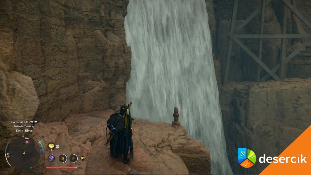 W niektórych miejscach w Crimson Desert wodospady ukrywają sekretne przejścia prowadzące do jaskiń lub skrzyń z nagrodami. Gdy staniesz tuż przy spadającej wodzie, użyj R1 + Trójkąt, aby aktywować umiejętność Dźgnij i przebić się przez strumień do ukrytej lokacji.