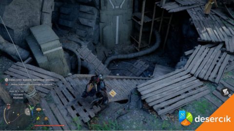 Na południe od jeziora znajdziesz ogromną drewnianą strukturę. Pod nią są ruiny i właśnie tam musisz zejść.