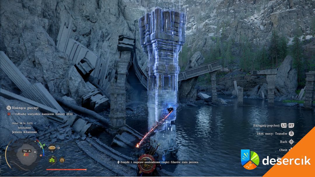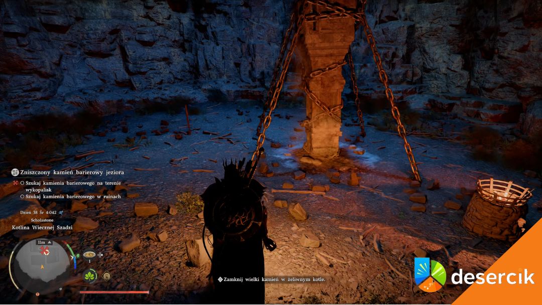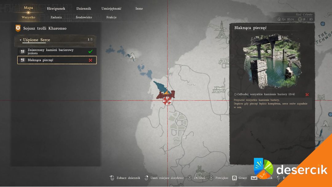 Zniszczony kamień barierowy jeziora to jedno z tych zadań, które na początku wyglądają jak zwykłe „przynieś cztery przedmioty”, ale szybko okazuje się, że kryje się za tym coś więcej. Pomagasz trollom w Kharonso, zbierasz fragmenty kamieni bariery, odbudowujesz strukturę jeziora, a na koniec odblokowujesz walkę z bossem. I to całkiem konkretną.