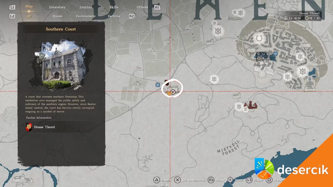 Posiadłość Azerian leży w regionie Demeniss i znajduje się bardzo blisko dworu Słoneczny Gaj. Najprościej ją namierzyć patrząc na mapę – wypada mniej więcej pod literą „M” w napisie „DEMENISS”.