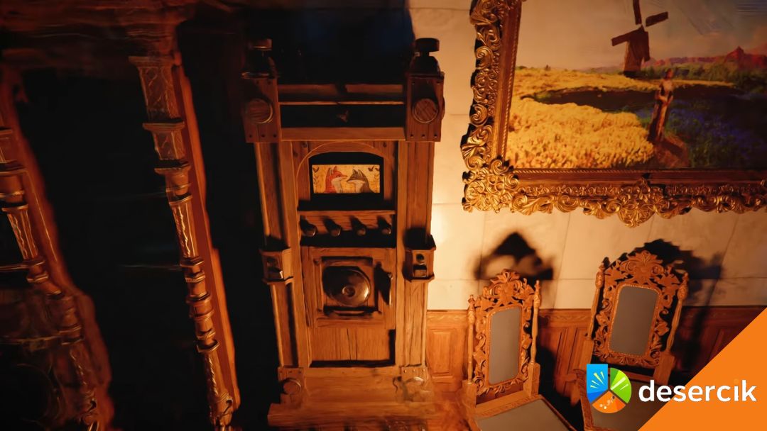 Podejdź do niej i naciśnij interakcję (popchnięcie). Ściana zacznie się obracać i odsłoni przejście do ukrytego pomieszczenia. W środku znajduje się mechanizm zagadki, czyli tzw. kasa pancerna.