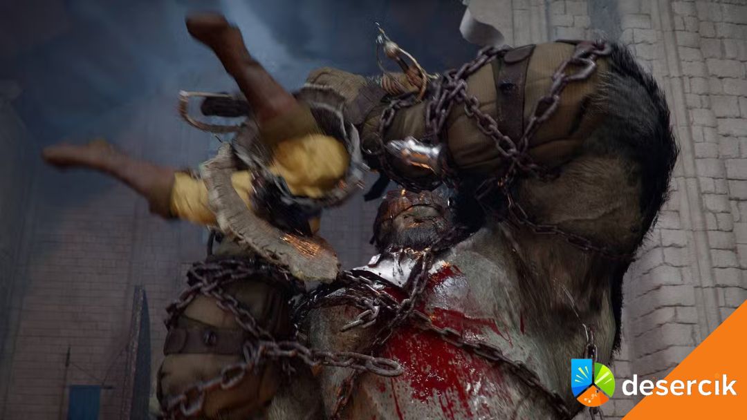 To bez wątpienia jedna z najcięższych walk w całym Crimson Desert – a na tym etapie prawdopodobnie absolutny test umiejętności. Przeciwnik, z którym się mierzycie, to Kearush Pogromca, gigantyczna bestia przypominająca rozwścieczonego goryla, dysponująca brutalną siłą i aż trzema pełnymi paskami zdrowia. To nie jest pojedynek na kilka uników i serię ciosów, tylko długie, wyczerpujące starcie, w którym kluczowe są refleks, opanowanie i przygotowanie.