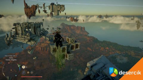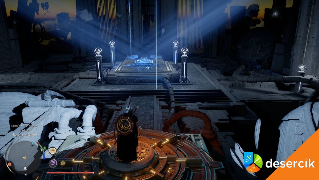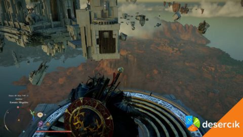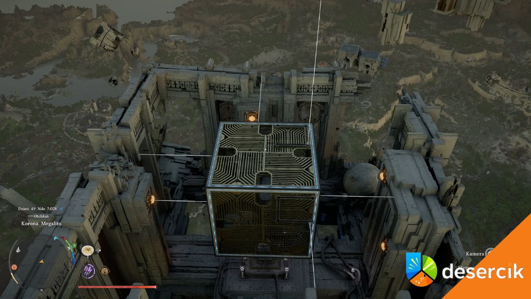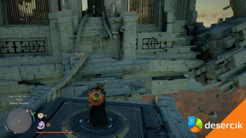 Od punktu szybkiej podróży idź przed siebie, mijając drzewo, a następnie skręć w prawo – trafisz na podniebny most. Aktywuj go, używając Mocy Aksjomatu (L3 / TAB) i obracając, aż zacznie świecić na niebiesko. Na końcu mostu wejdź do teleportera – przeniesie cię do Korony Megalitu .