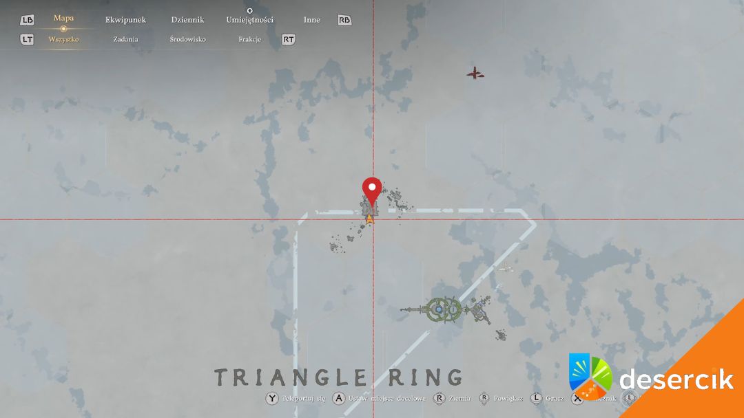 Najpierw musisz ukończyć Rozdział 5. Otwórz mapę, wciśnij R3 / kółko myszy, żeby wejść w mapę nieba i znajdź Triangle Ring w centrum mapy. Następnie udaj się do Gniazda Wron, tam gdzie walczyłeś z bossem Przywoływacz Wron pod koniec Rozdziału 5.