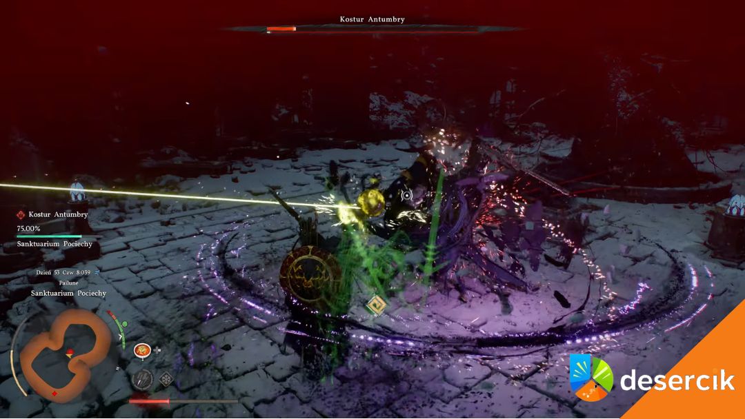 Oczyszczanie Sanktuarium Pociechy to moment, w którym gra przestaje być wyrozumiała. Samo pokonanie zwykłych przeciwników to tylko rozgrzewka – prawdziwym wyzwaniem jest boss Kostur Antumbry, który pilnuje tego miejsca.