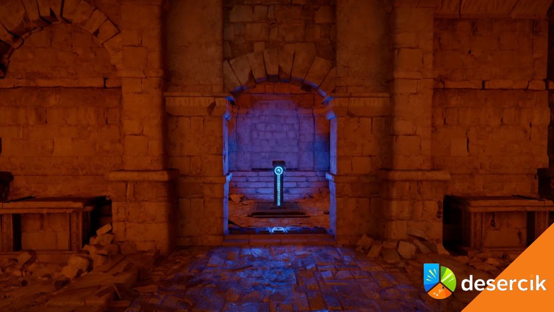 W środku czeka na ciebie coś, co wygląda dość niewinnie – osiem przycisków z symbolami. I klasycznie, gra nie tłumaczy nic więcej. Twoim zadaniem jest wciśnięcie pięciu właściwych przycisków, żeby otworzyć przejście dalej. Problem polega na tym, że nie ma żadnych oczywistych oznaczeń, które mówią „kliknij mnie”.