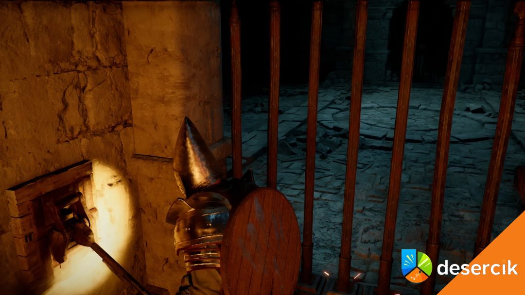 Na końcu trafiasz do drzwi z dźwignią. Aktywujesz ją i dopiero wtedy wchodzisz do właściwego pomieszczenia z zagadką.