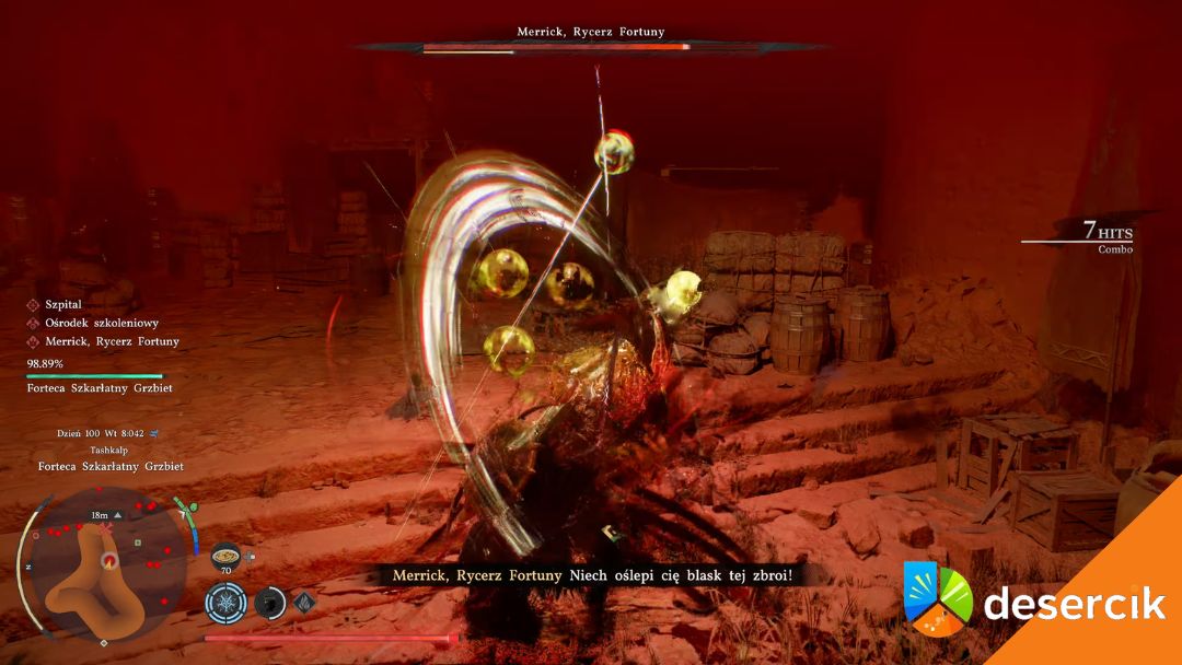 To jest absolutna klasyka. Boss ma mało HP, widzisz końcówkę i próbujesz go „dobić na siłę”. I właśnie wtedy Merrick najczęściej wyprowadza kontrę. Lepiej zadać mniej obrażeń i wygrać pewnie, niż ryzykować wszystko dla jednego uderzenia.