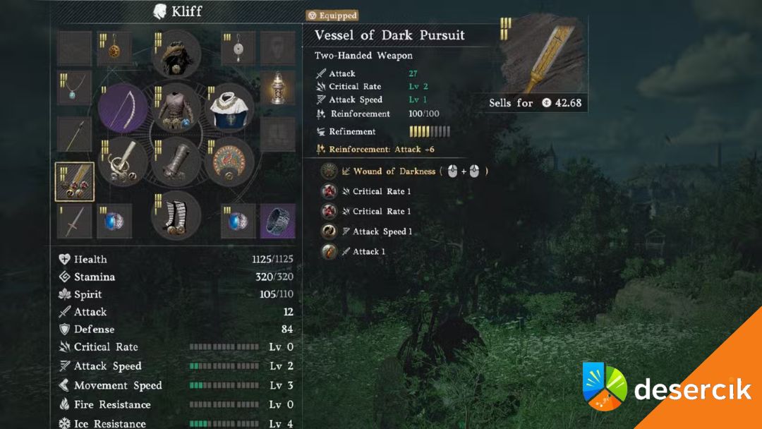 • Naczynie Mrocznego Pościgu (Vessel of Dark Pursuit) – dwuręczny miecz o potężnych obrażeniach.