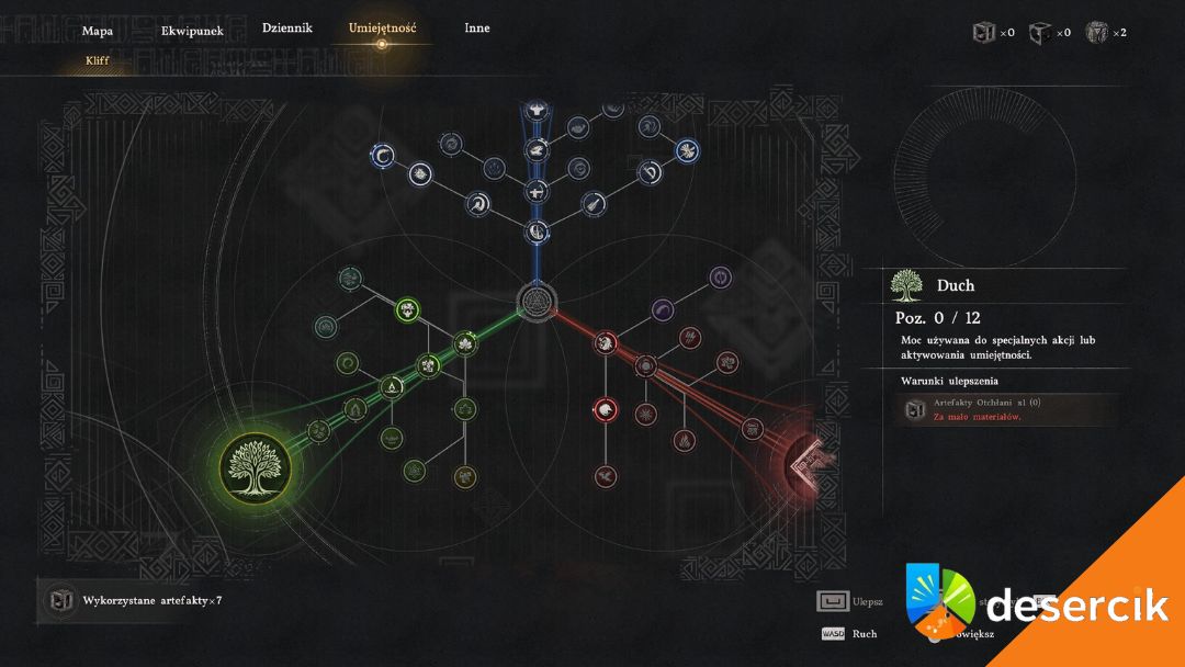 Drzewko umiejętności – w menu Umiejętności znajduje się zielona gałąź odpowiadająca za Moc Ducha. Tam inwestujesz punkty, które zwiększają maksymalny pasek energii.