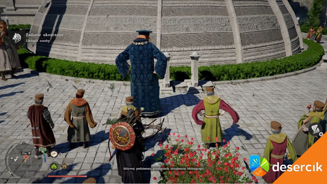 Po wejściu do Instytutu Scholastone kieruj się na most. To właśnie tam znajdziesz dziekana – stoi w widocznym miejscu i ma na sobie niebieską szatę, więc trudno go przeoczyć.