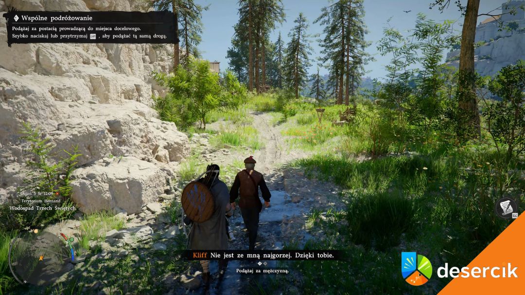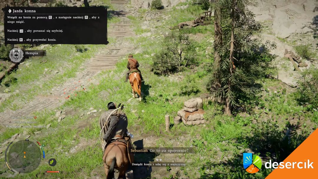 Po dotarciu do koni wsiądź na swojego wierzchowca. Od tej chwili będziesz jechać za Sebastianem pod górę.