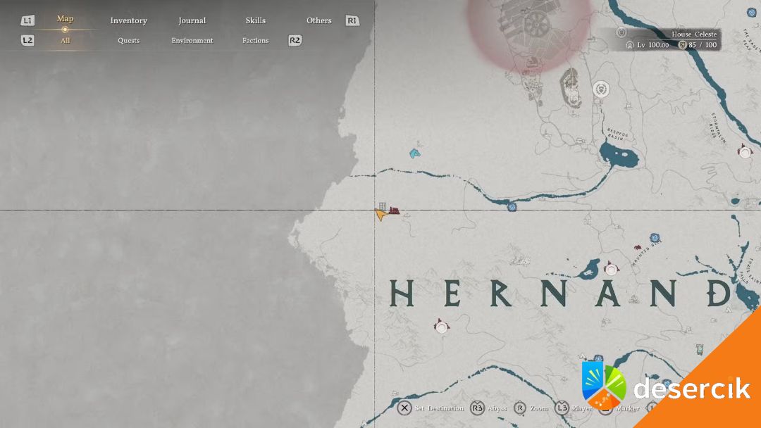 Ruiny Hoenmark znajdują się na północ od oznaczonego na mapie punktu „H” w Hernand. Najłatwiej rozpocząć z pobliskiego punktu orientacyjnego, aby płynnie dotrzeć do ruin.