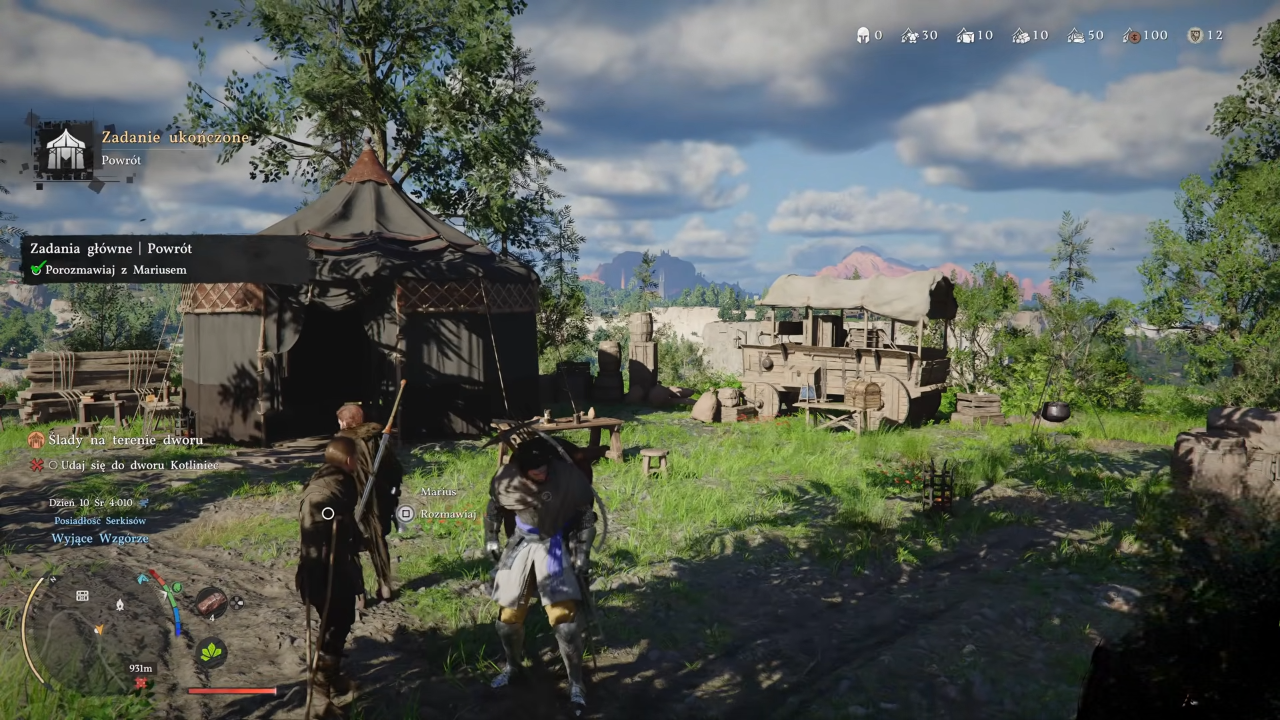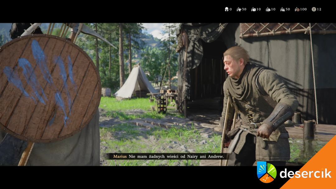 Po dotarciu na miejsce znajdziesz Mariusa siedzącego przy stole przed namiotem. Podejdź i rozpocznij dialog – to jedyna czynność wymagana do ukończenia zadania.